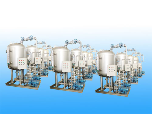 它通過(guò)罐體內(nèi)的調(diào)壓裝置、氣濁消除裝置和特質(zhì)的水泵,解決了水泵的氣蝕,從而實(shí)現(xiàn)了高溫冷凝水和高能二次汽的完全閉式回收,縮小了集水容器的體積,采用自動(dòng)控制系統(tǒng)使冷凝水幾十回收,使能量浪費(fèi)降低到最低,而且杜絕了氧腐蝕,不見(jiàn)了二次汽。